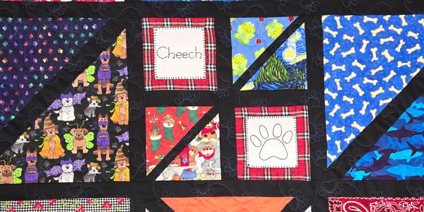 I can make a quilt for you from scratch using just about any item you have. I have used a loved one's clothing (dress shirts, blue jeans, aprons, etc.), prize ribbons, and even dog grooming bandanas.